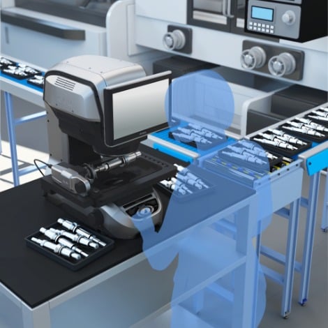 IM-8000 can be used in the processing floor. The first article inspection and in-process inspection are also important to guarantee quality. Fast and accurate measurements reduce machine idling time and waste of material due to defects.