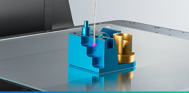 The built-in multi-colour laser instantaneously captures the height of the specified location on the part, allowing for accurate measurement regardless of the material.