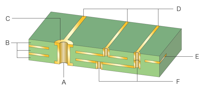 Multi-layer boards laminate copper foil and insulating layers called prepreg. This type is called a four-layer board, six-layer board, or eight-layer board according to the number of laminated layers. The more layers a board has, the more complex its structure. The designing and manufacturing costs increase accordingly. At the same time, multi-layer boards can contain power circuits and general signal lines between layers, increasing the surface area used for mounting and also increasing the mounting density.