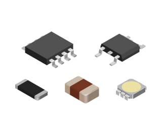 Components to mount on surfaces, which are called surface mount devices (SMDs), are packages having lead tips parallel to lands or have electrodes at both bottom edges or on their sides.