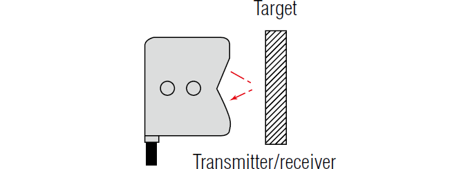 Detection occurs when the light beam, emitted to the target, is reflected by the target and received.
