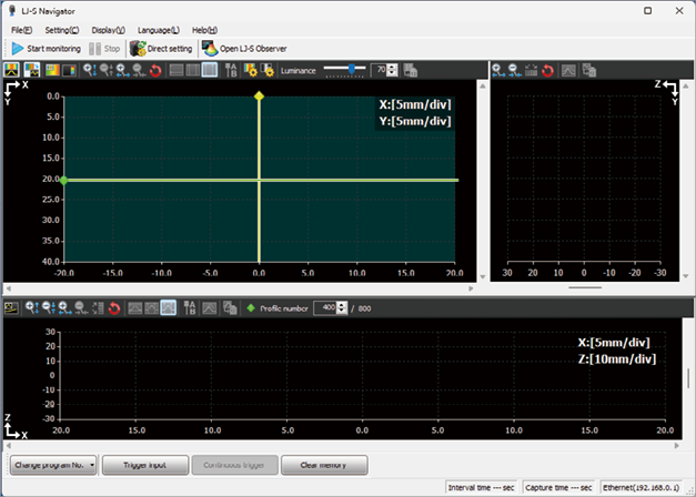 - Check the initial status. Turn on the PC and head and connect them with each other, and start the LJ-S Navigator.